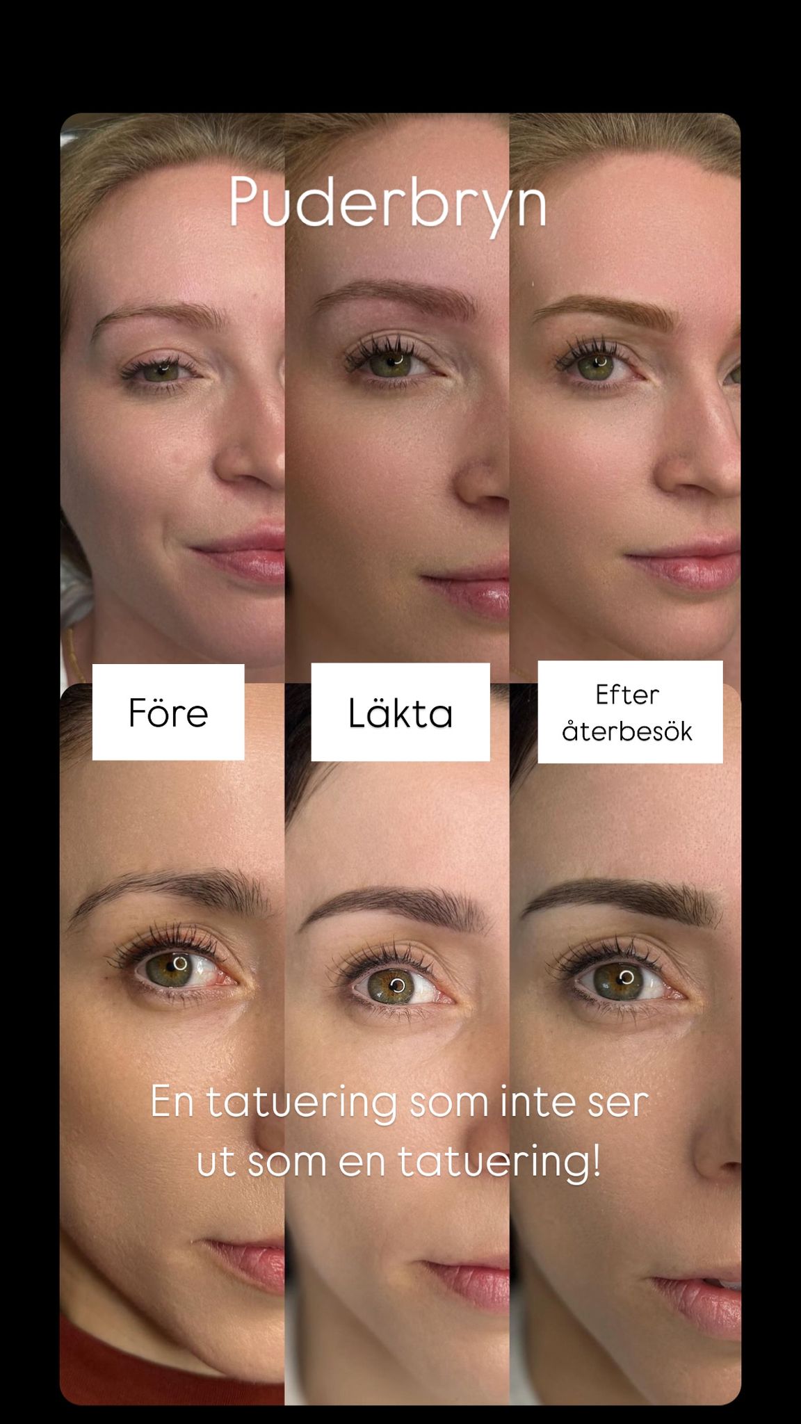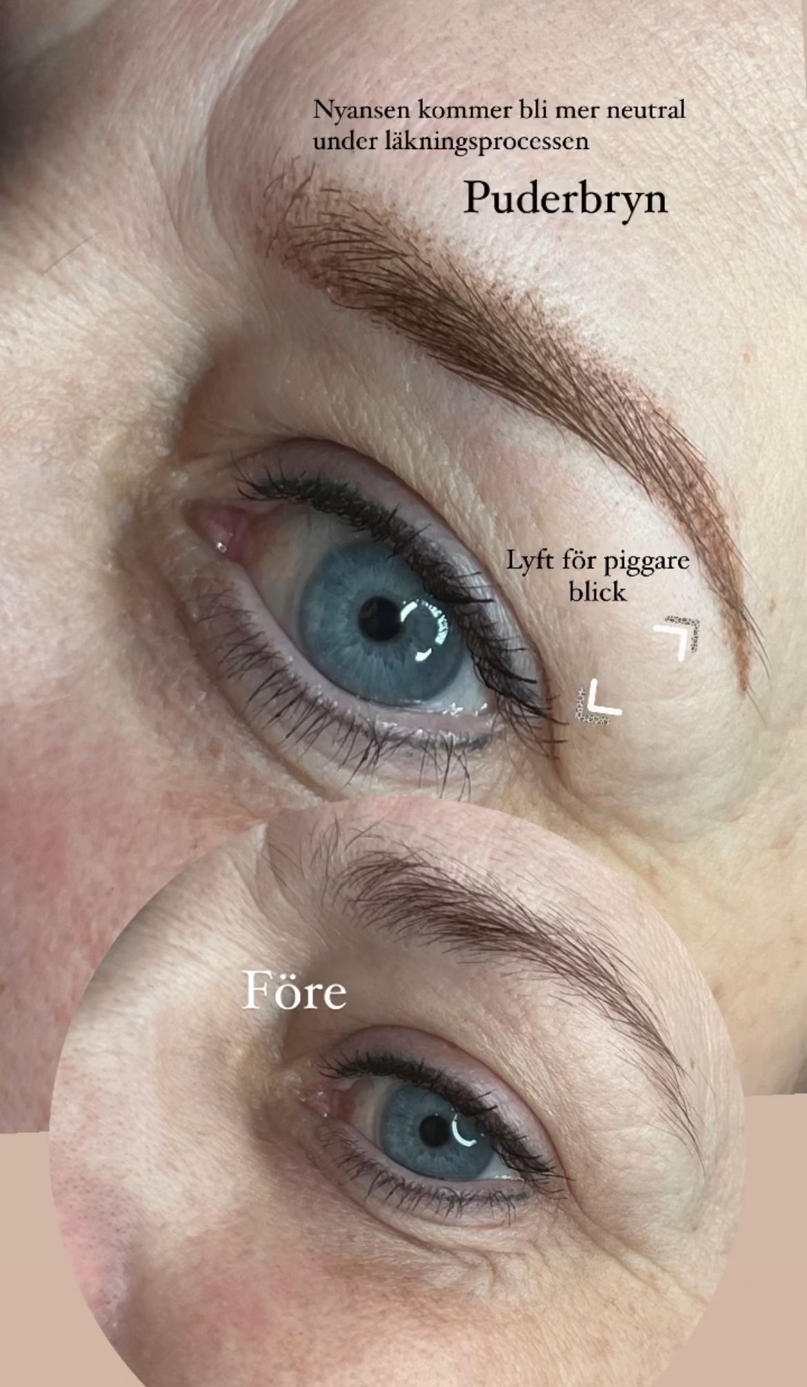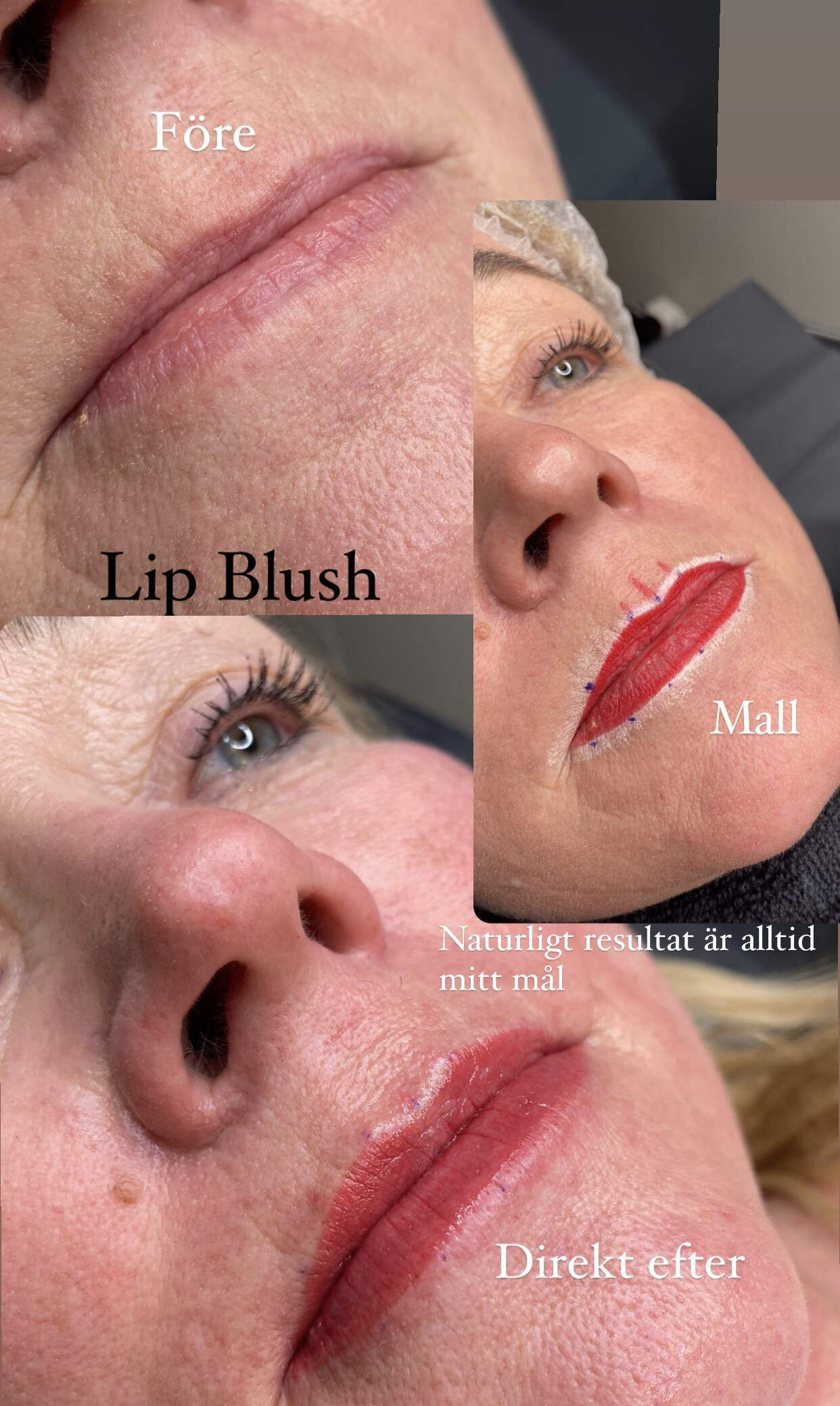 Behandlingar som puderbryn, eyeliner och lip blush anpassas efter dina önskemål och din ansiktsform. Målet är att skapa en mjuk och naturlig look som förstärker det du redan har.