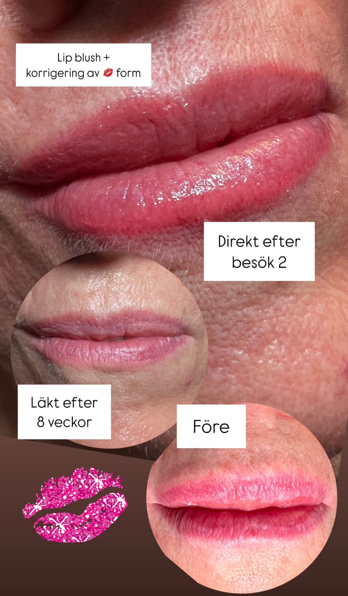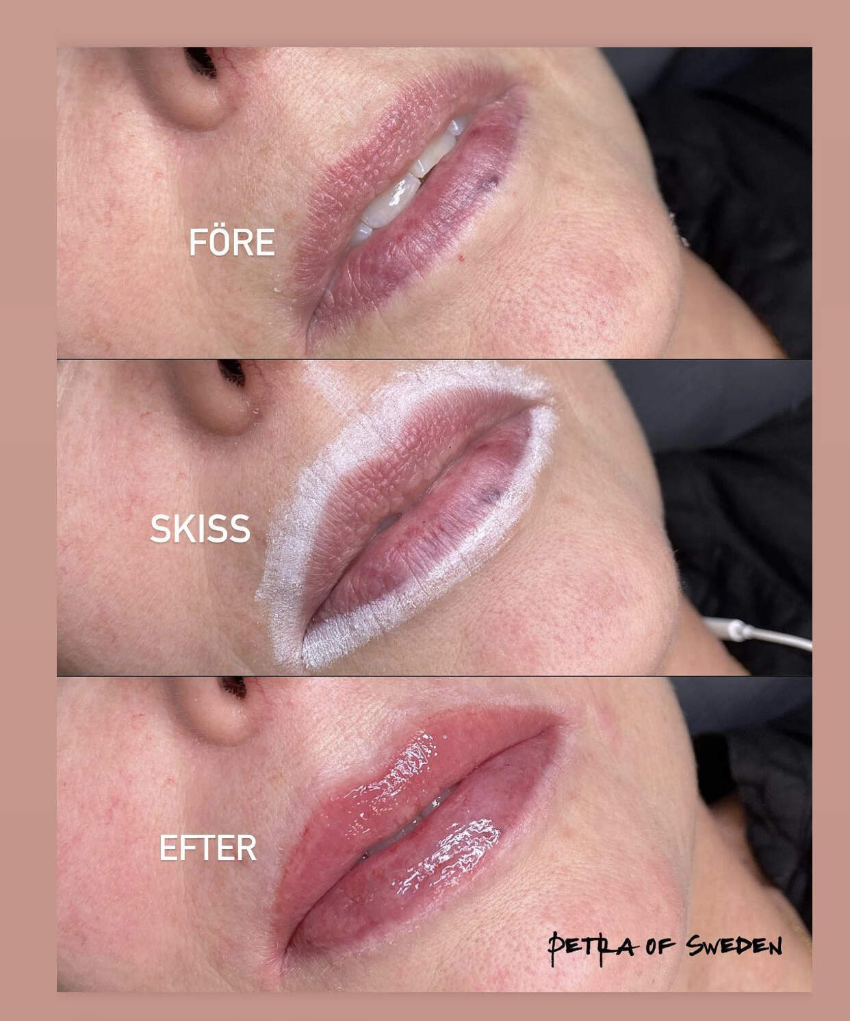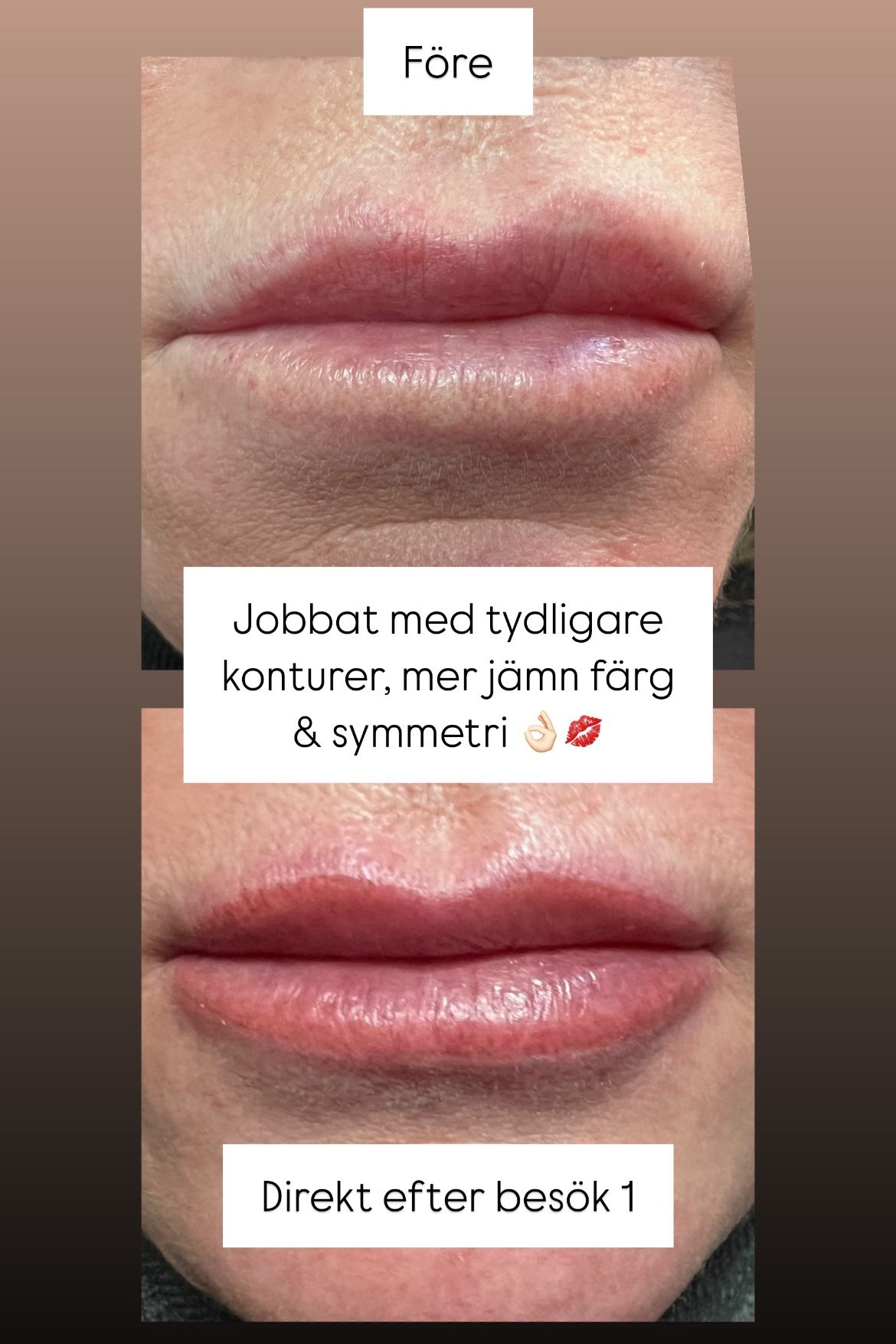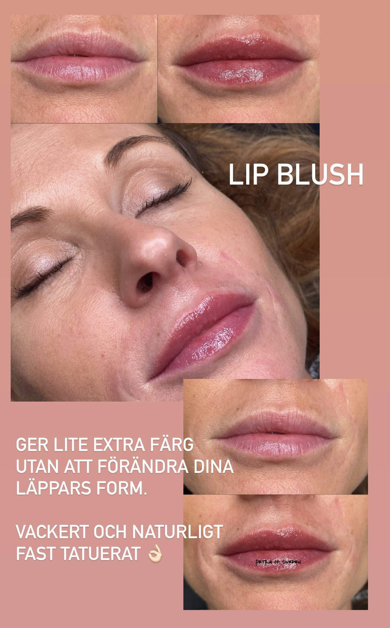 Behandlingar som puderbryn, eyeliner och lip blush anpassas efter dina önskemål och din ansiktsform. Målet är att skapa en mjuk och naturlig look som förstärker det du redan har.